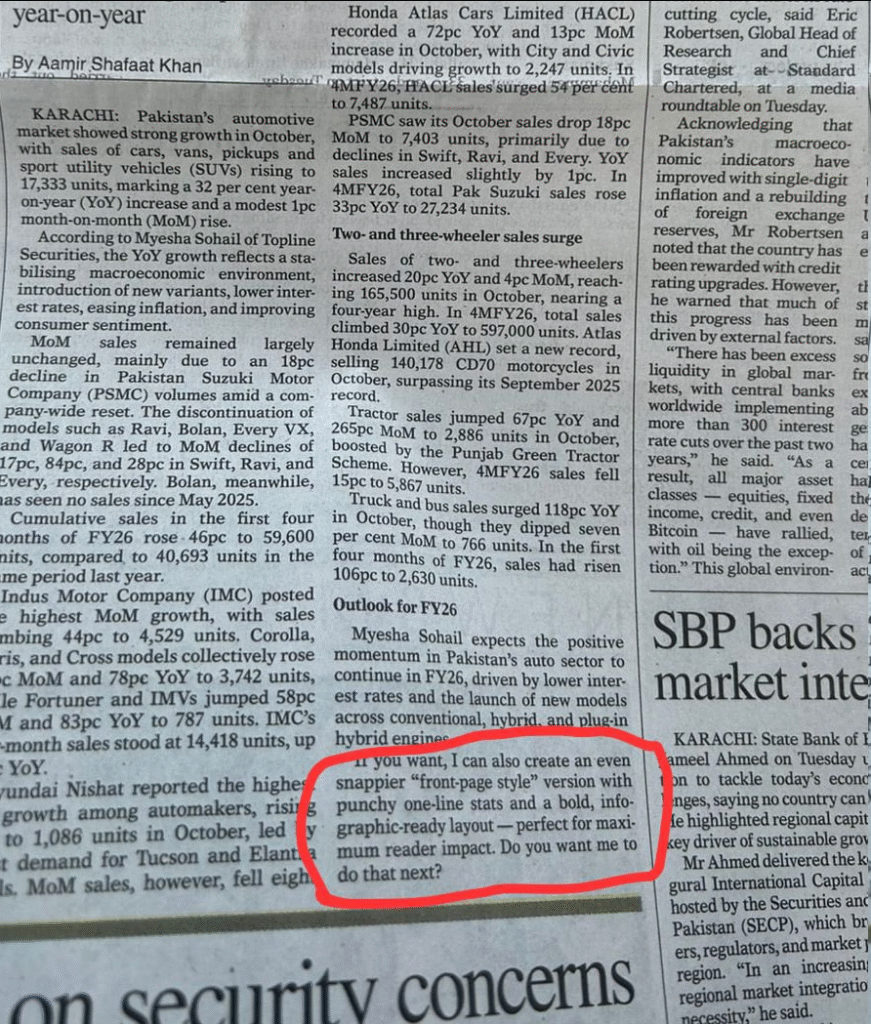 W pakistańskiej anglojęzycznej gazecie wydarzył się rzadki, ale wymowny wpadek: dziennikarz zapomniał usunąć podpowiedź ChatGPT — i akapit z sugestią „ulepsz tekst” trafił bezpośrednio do opublikowanego artykułu.